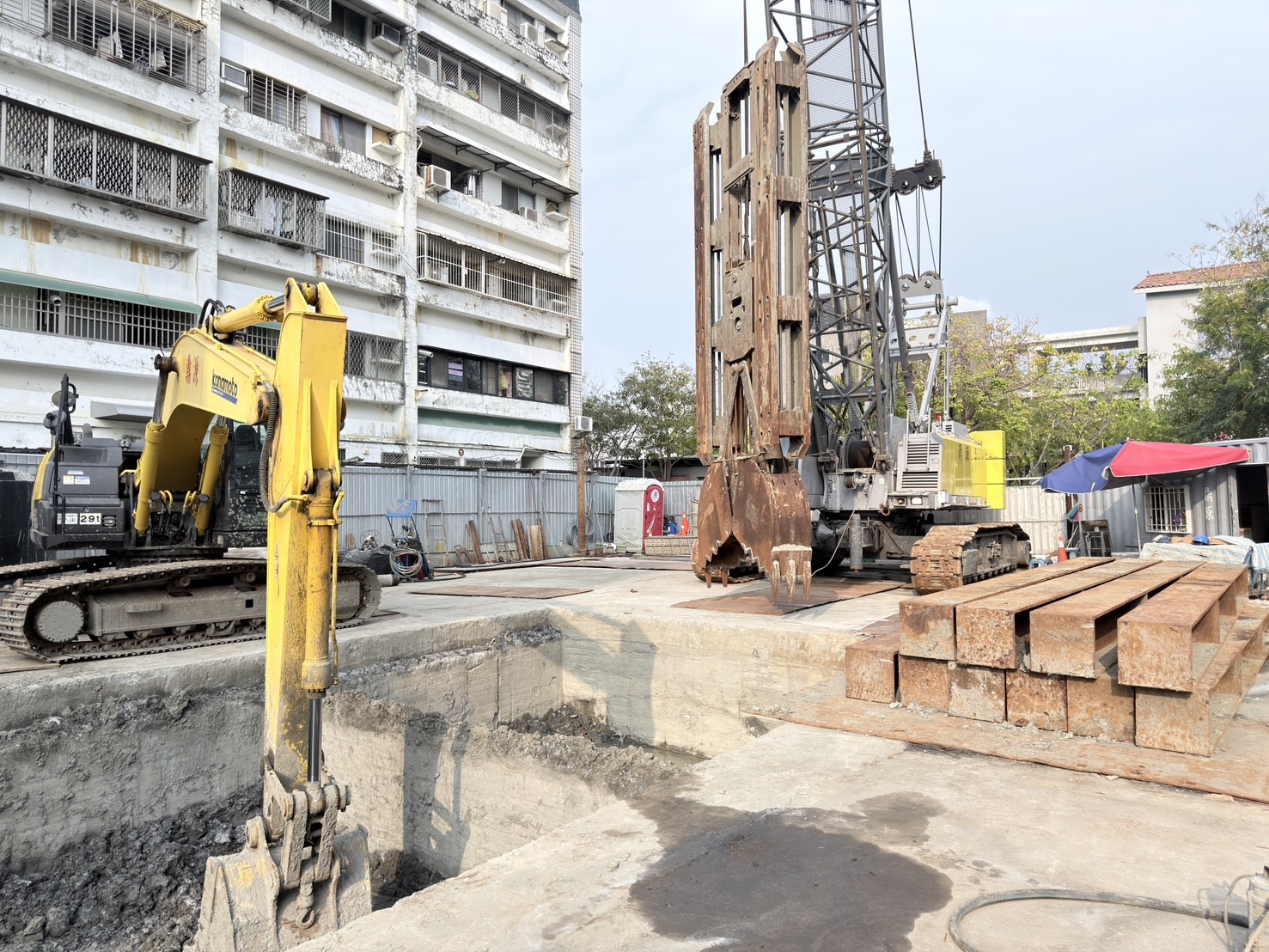 2026/4/7 地下室連續壁工程開挖、鋼筋籠施作、混凝土澆置。